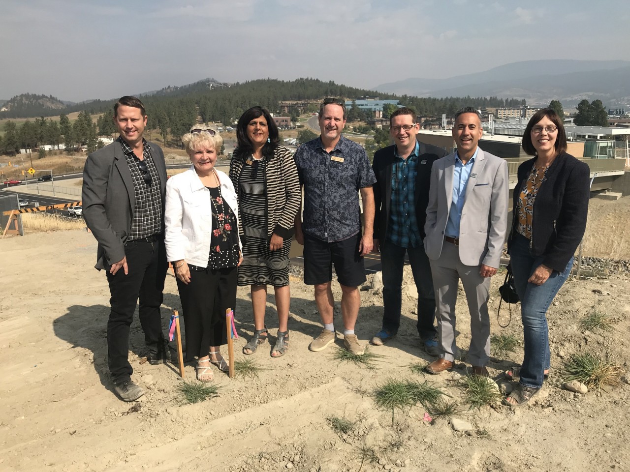 L-R - Kelowna Counclllors - Brad Sieben, Maxine Dehart, Mohini Singh, Luke Stack, Ryan Donn, Mayor Colin Basran and Gail Given. The new road is below us.